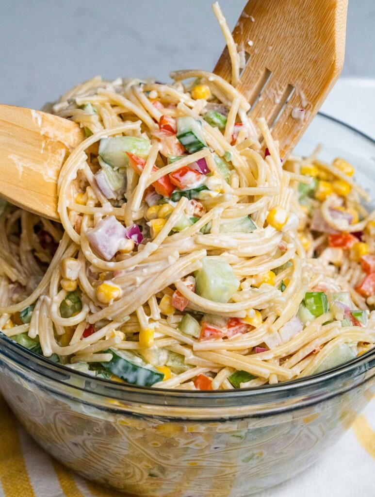 A Creamy, Colorful Pasta Delight Bring a burst of joy to your table with this Confetti Salad! It takes the