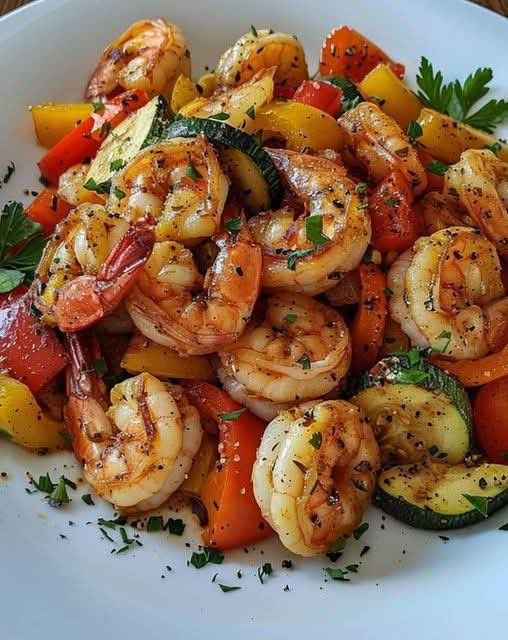 Lemon Herb Shrimp and Veggie Skillet Ingredients: – 1 lb large shrimp, peeled and deveined – 2 tbsp olive oil