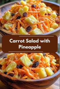 In a large bowl, mix together the shredded carrots, crushed pineapple, and raisins.