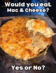 And finally, baked mac and cheese is a classic comfort food that pairs perfectly with the other two items. The cheesy goodness of mac and cheese is sure to satisfy any craving for comfort food. The dish is typically made with elbow macaroni, a creamy cheese sauce, and baked until golden brown on top.