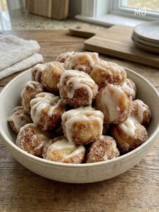 To prepare, start with one tube of refrigerated cinnamon rolls and set the icing aside for later. Cut each roll into small bite-sized pieces. In a separate bowl, whisk together two eggs, about one-third cup of milk, a teaspoon of vanilla extract, and a small sprinkle of ground cinnamon. Lightly coat the dough pieces in this mixture so they absorb flavor without becoming soggy. Melt a little butter in a skillet over medium heat and cook the coated pieces in a single layer, turning occasionally until they become evenly golden and cooked through. For an alternative method, the bites can also be cooked in an air fryer at 350°F (175°C) for about six to eight minutes, shaking halfway through for even browning.